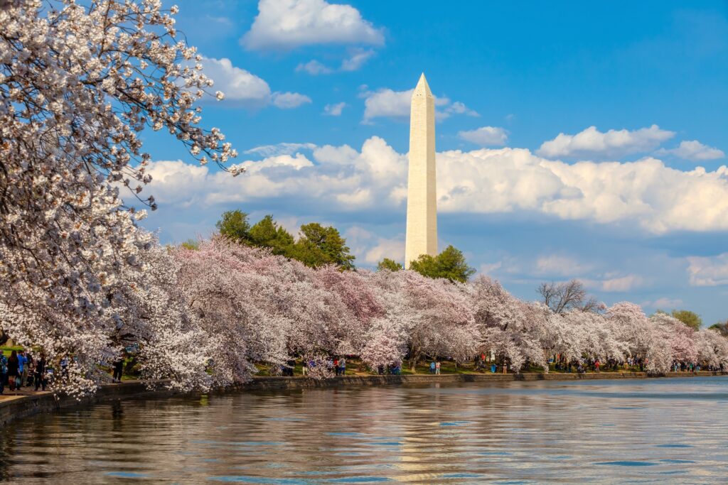 Yoshino cherry is the tree that lines the National Mall in Washington D.C. In South Jersey it blooms in late March to early April — white to very pale pink, clouds of single flowers covering the entire canopy before the leaves even come out. The bloom window is short, about 10–14 days, but it’s dramatic while it lasts.
